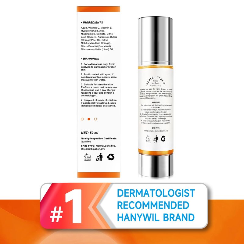 - Multi-Tasker Vitamin C Face Serum: HANYWIL Super Vitamin C Serum combats signs of aging with a vitamin C serum enriched with Vitamin C, Vitamin E, Hyaluronic Acid, Aloe, and Botanical extracts. One drop delivers a powerful dose making it an essential part of the skin care routine.