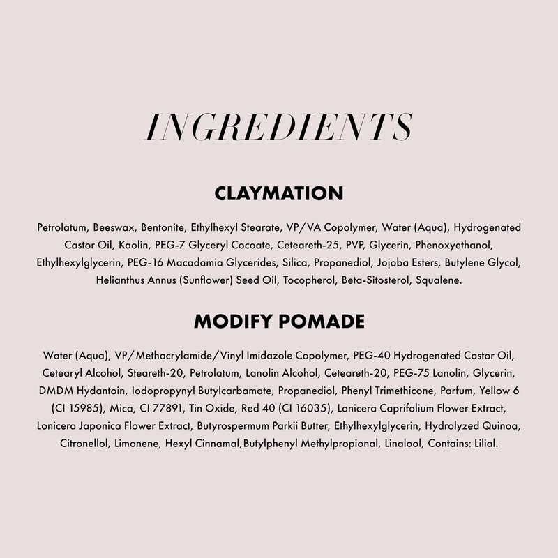 - Modify Pomade: Medium Hold, High Shine for classic, sleek looks.