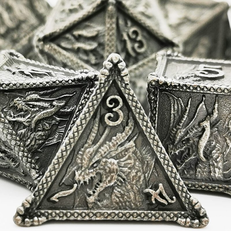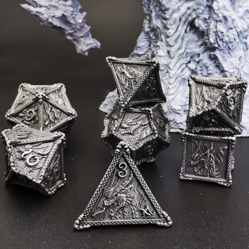 HAOMEJA Dice DND Metal Dragon Set Dice 7 Role Playing Dice D&D Solid Dice Dungeons and Dragons (Antique Iron)