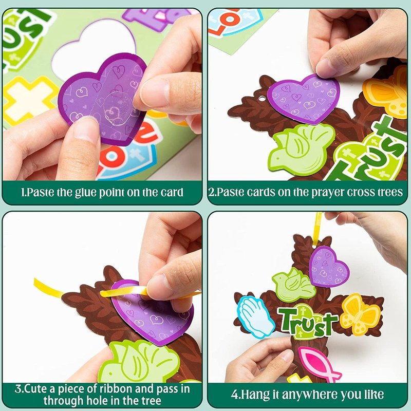 - What Will You Get: You will receive 24pcs prayer cross trees, 24pcs pattern cards, 12 sheet self-adhesive glue points and a roll of golden yellow ribbon. Sufficient quantity let you can diy with kids, great for classroom crafts or home activity.