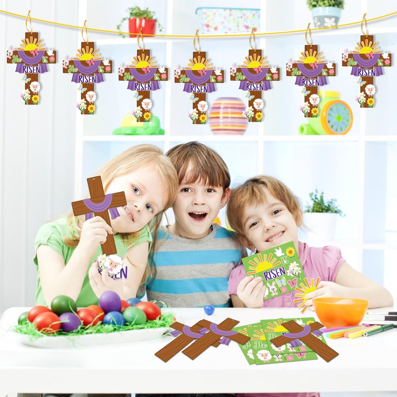 - DIY Your Own Craft: This Jesus Resurrection cross craft kit is a great way to teach little ones the meaning of Easter! Have kids use their own markers to write their blessings on the lovely patterns, then display this meaningful decoration on the table at Easter dinner.