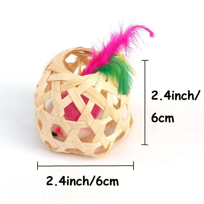 • Durable and Safe: Made from high-quality, non-toxic materials, this cat toy is both safe and durable. The sturdy bamboo cage withstands rough play, while the soft plush mouse and feathers are gentle on your cat's paws and teeth