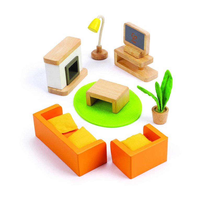 - PERFECT ADDITION TO THE DOLLHOUSE: Complete the Hape Happy Family series with this lovable wooden media room set and fits perfectly into your All Season Dollhouse or any 1'' scale doll house.