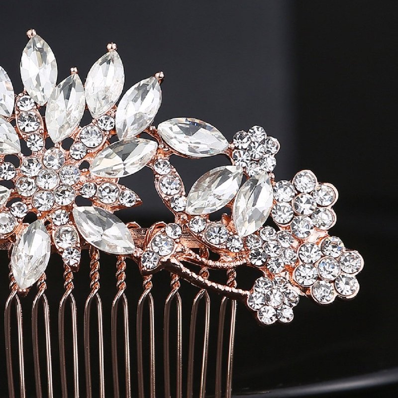 Hapibuy Rose Gold Clear Crystal Bridal Wedding Hair Comb Wedding Headpiece Hair Pins