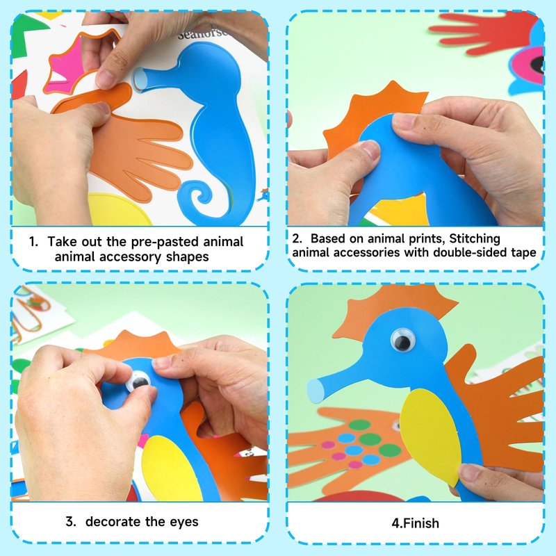 - Fun Kids DIY Craft Kit: Unique hand shape design and other shapes are combined to create various cute and unique animals such as butterflies, parrots, seahorses, peacocks, ladybugs, giraffes, etc., bringing unique fun to kids.