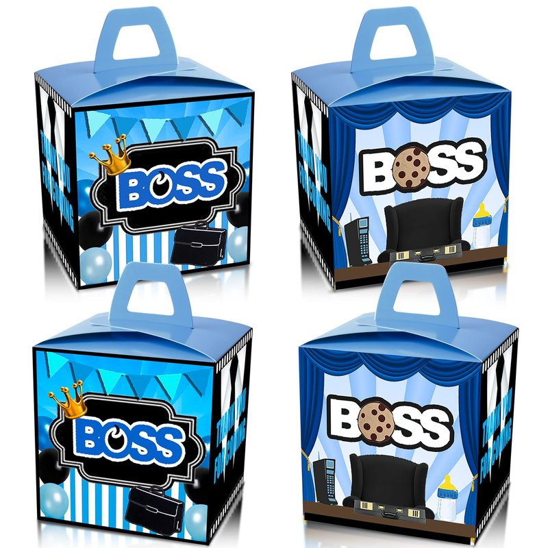HAPPARTY BOSS Party Favor Boxes 24 PCS,Blue BOSS Boy Gift goodie boxes, boss birthday favor candy treat boxes, boss 1st 2nd birthday decorations, boss birthday party supplies