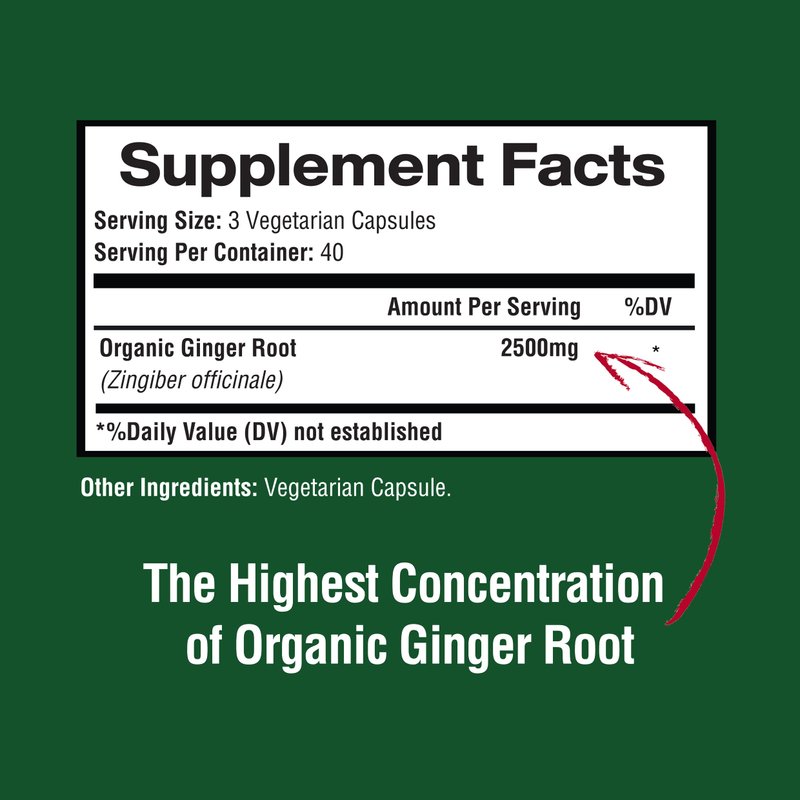 - We bring you our organic ginger powder in vegetarian capsules for better absorption without any artificial sweeteners, colors, preservatives, allergen free. Rest assured that we go extra miles to source the best quality ingredients available for our customers with the most affordable price.