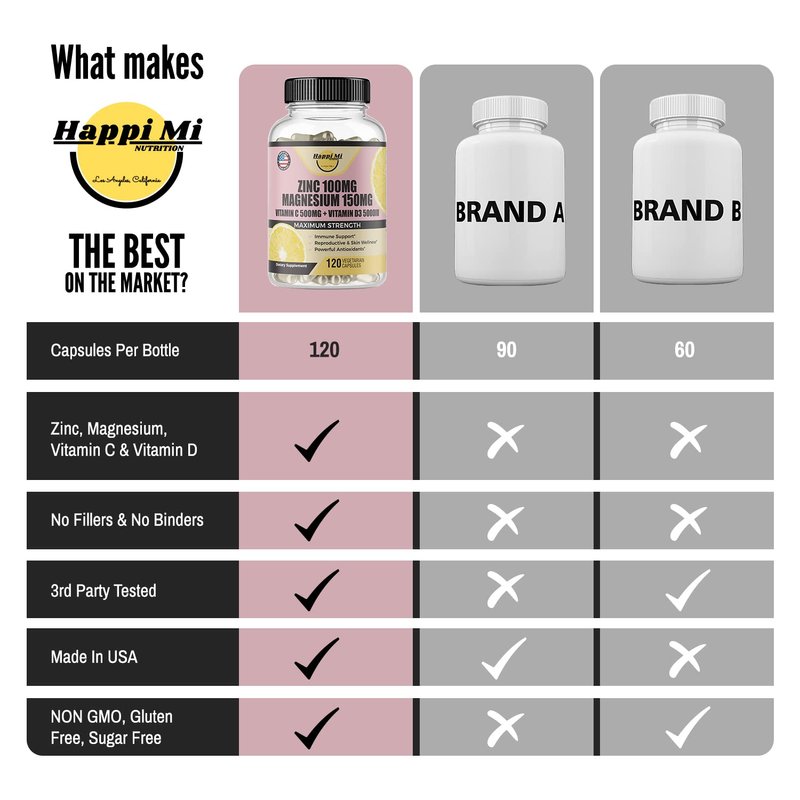 - Zinc and Magnesium Supplements: purity, potency balance mixture of Happi Mi's zinc supplements is to promote optimal health with high quality, affordable and superior formulation of dietary supplements; Zinc supports immune support, is usually paired with magnesium supplement for optimal results.