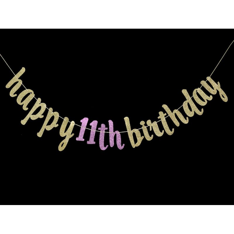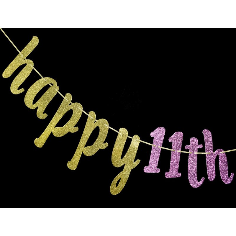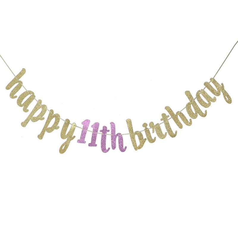 - This glitter happy 11th birthday banner will bring a touch of sparkle to your event!