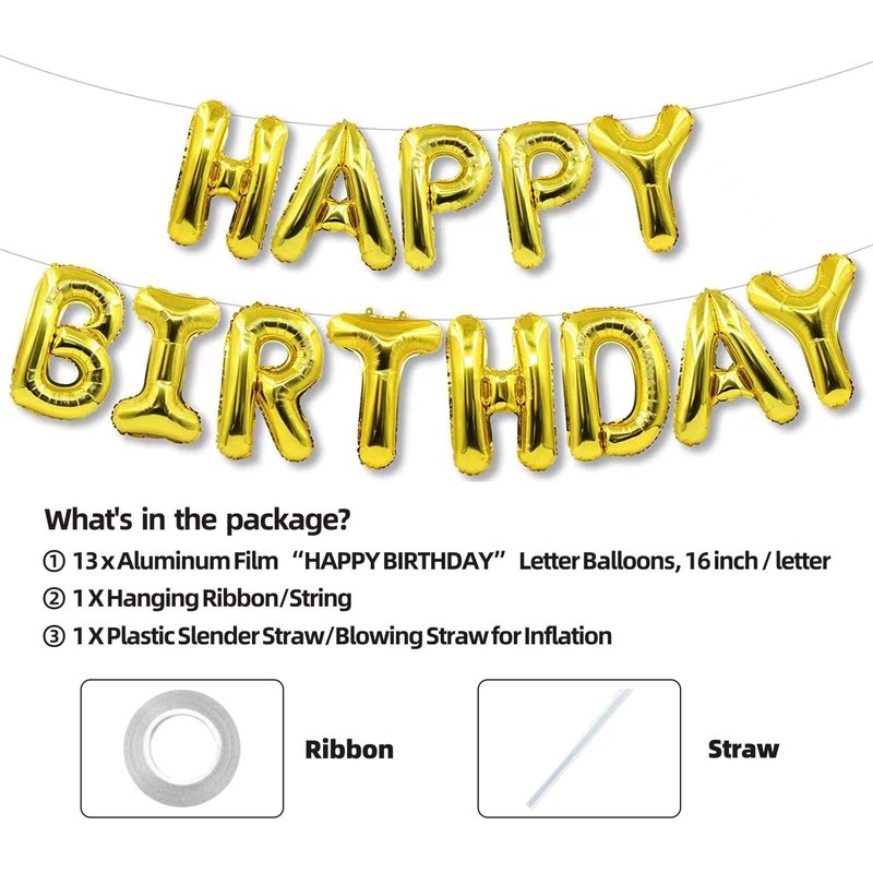 Surprise kids, adult, friends, family, or children with a giant, sparkling inflatable Happy Birthday Balloon Banner! Celebrate the big very important age milestones in the life with a happy birthday balloon banner decoration supplies to make them the center of attention! Product Details: Product Description: Happy Birthday Balloon Banner, Reusable Aluminum Foil Letters Balloons for Birthday Party Decorations,Exquisite Fine workmanship Material: High Quality Eco-friendly Aluminum Foil Perfect Simple and Easy Design: Auto-Seal Balloon Design,Easy to Inflate Letter Height: 16” / Each Letter Balloons Age: 3+ years Package Includes: ① 13 x Aluminum Film “HAPPY BIRTHDAY” Letter Balloons ② 1 X Hanging Ribbon/String ③ 1 X Plastic Slender Straw/Blowing Straw for Inflation Features: 1.Exquisite Fine workmanship Happy Birthday Balloon Banner 2.Material: Made with high quality, bright, vibrant, durable, uniform and bright, metallic, ultra-shiny aluminum foil eco-friendly inflatable Aluminum Foil that maintains form without leaking or losing air. 3. This fantastic birthday party decoration supplies can make your party happy, special, attractive and memorable. 4. Large Birthday Banner Balloons:Designed with big 16 inch aluminum foil letters, this happy birthday sign lets you celebrate special moments with children, friends, and family. 5.Smart, Reusable Design:Easy to inflate and deflate with a quick valve system. It’s the perfect decor for kids and adults looking to have fun.