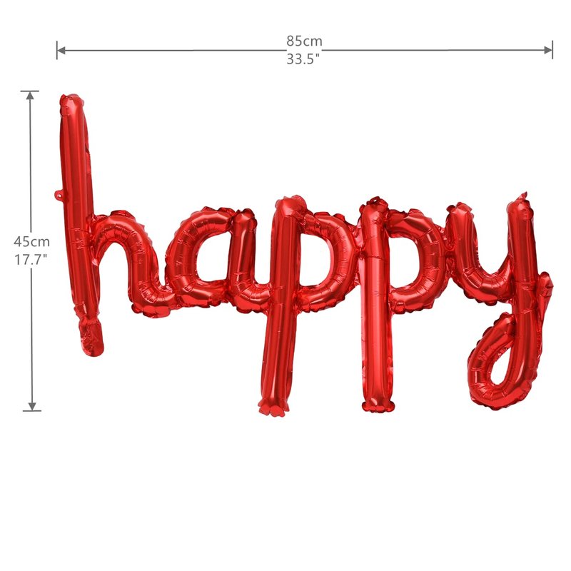 This is one set of 16 inch hanging birthday balloons of cursive letter happy birthday.
