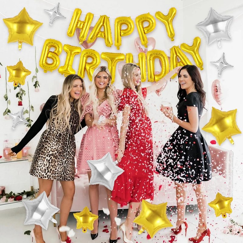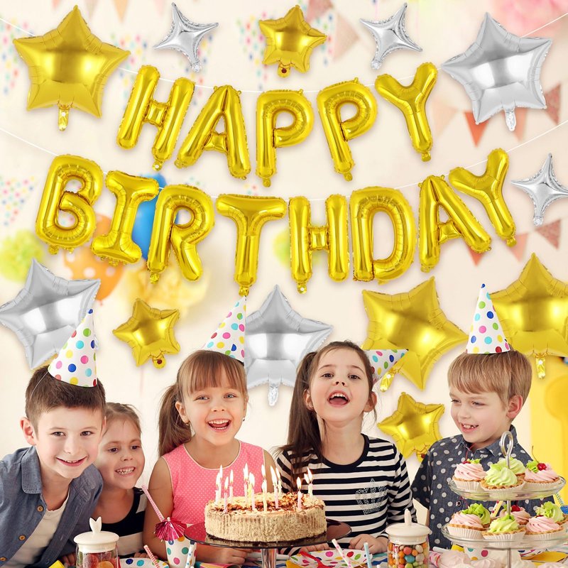 - Package Includes: 1 set happy birthday balloons, 3 pcs 10inches four-pointed star balloons, 3 pcs 10inches five-pointed star balloons, 6pcs 18inches five-pointed star balloons, 1pcs straw, 1pcs ribbon. This birthday letter balloons will make your party bright and vibrant.