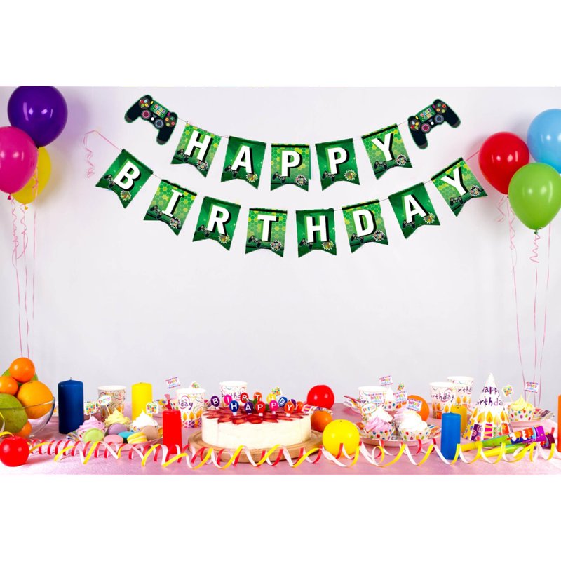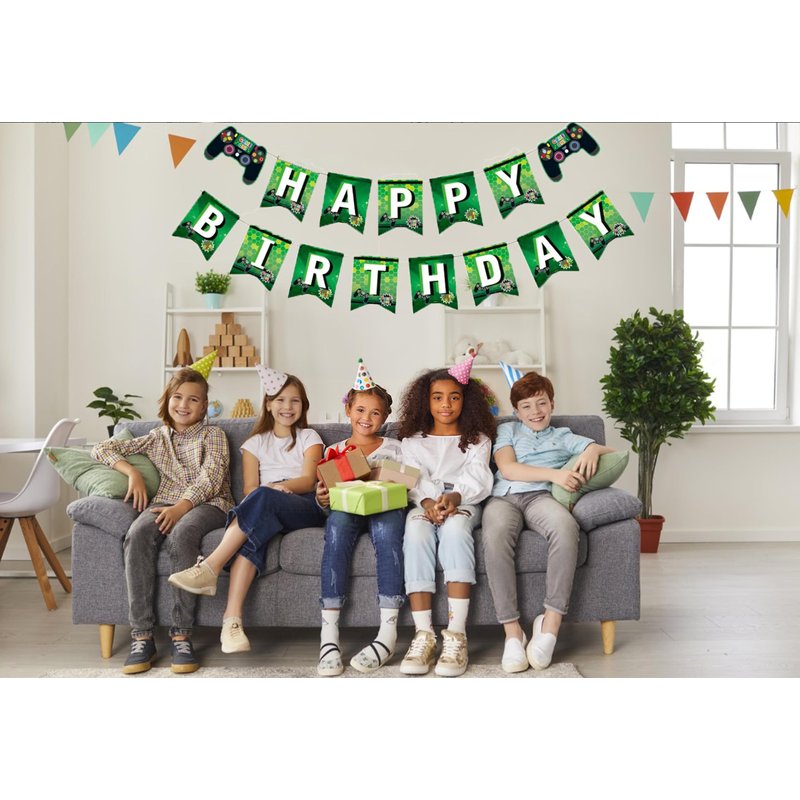 Happy Birthday Banner Green Game Controller Video Game Theme Birthday Party Supplies for Boy Girl Birthday Party Decoration