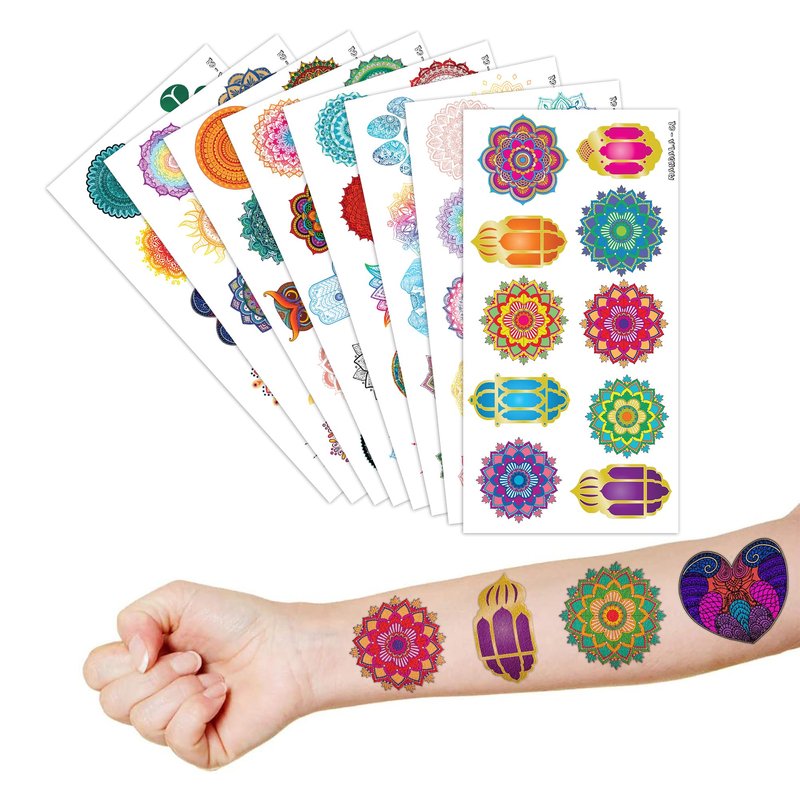 - 🪔【PERFECT TATTOOS FOR HAPPY DIWALI CELEBRATIONS】: Happy Diwali Temporary Tattoo decals are available in a set of 8 sheets. These sheets showcase a total of 81 intricate and captivating designs inspired by Diwali symbols, making this collection a must-have for enthusiasts of the Festival of Lights. Measuring 6.1 * 3.1 inches each, these sheets are perfect for both kids and teens to display their Diwali spirit on clothing, accessories, or as thoughtful presents for partygoers.
