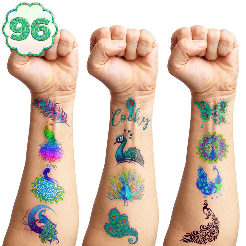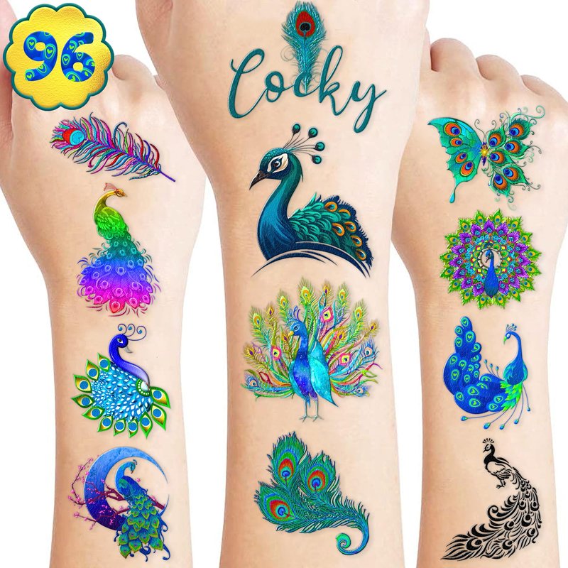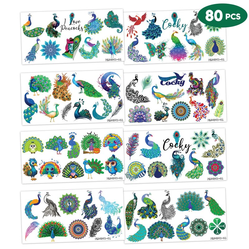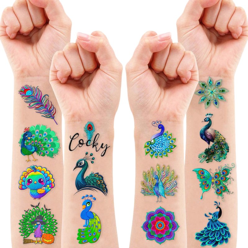 Happy Diwali Temporary Tattoos 81 PCS Indian Festival of Lights Party Themed Stickers for Kids Birthday Party Supplies, Decorations, Favors, and Prizes (Peacock)
