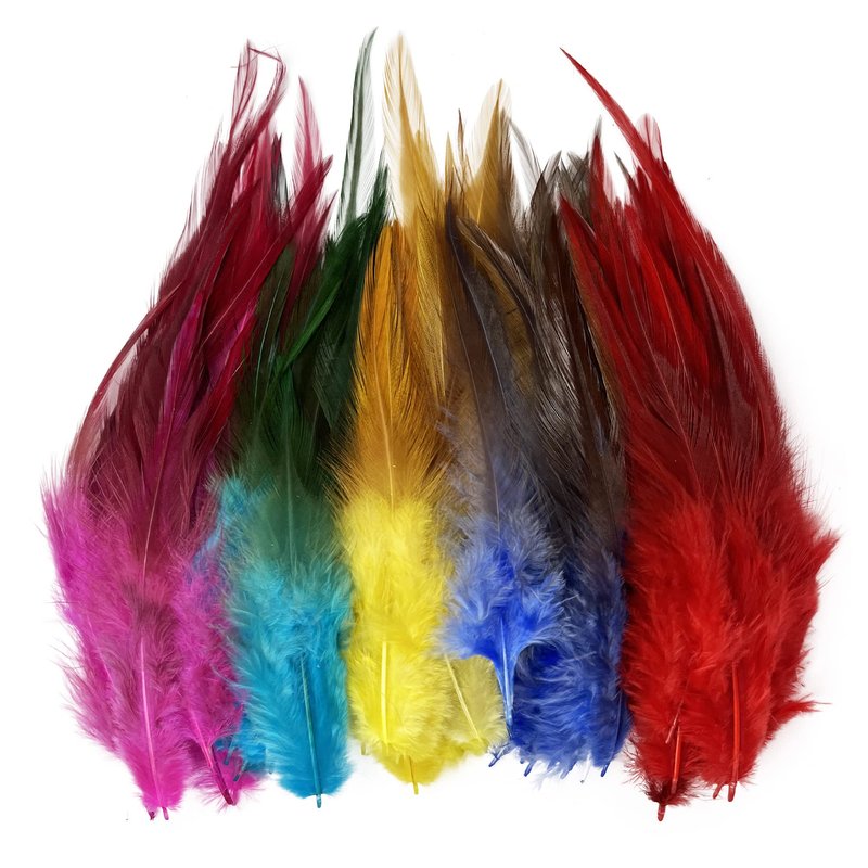 - Material: dyed rooster saddle feathers