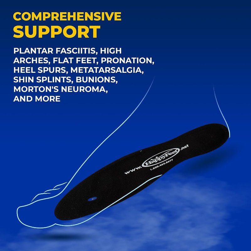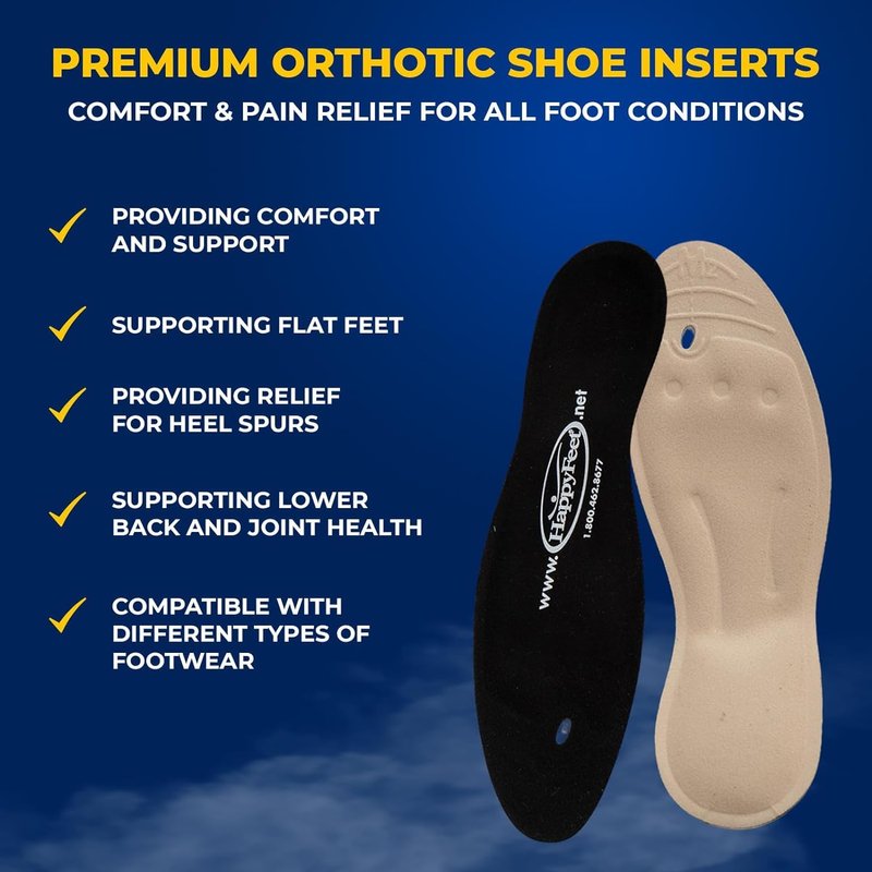 - IMMEDIATE PAIN RELIEF: Happy Feet Offers podiatrist recommended inserts for all ages and gender. Use our inserts to eliminate arch pain, Knee, Ankle, Neck, Back, Lower Back, Heel Spur, Joint, Bunions, Pronation, and Knee Pain. Happy Feet Orthotic provide arch support and some degree of gait correction and cushion.