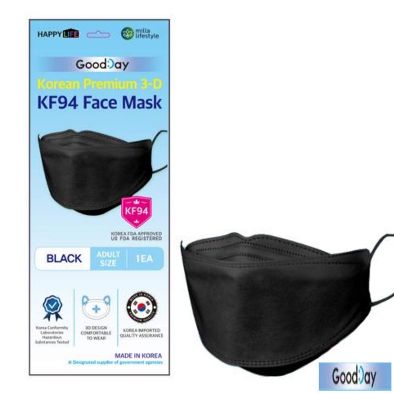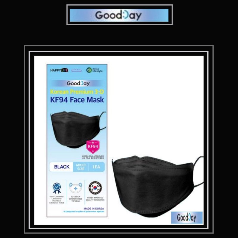[Happy Life] Premium 3D Black KF94 Face Mask, Good Day, Individual Pack Made in Korea (24)