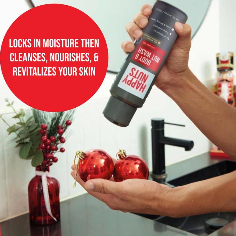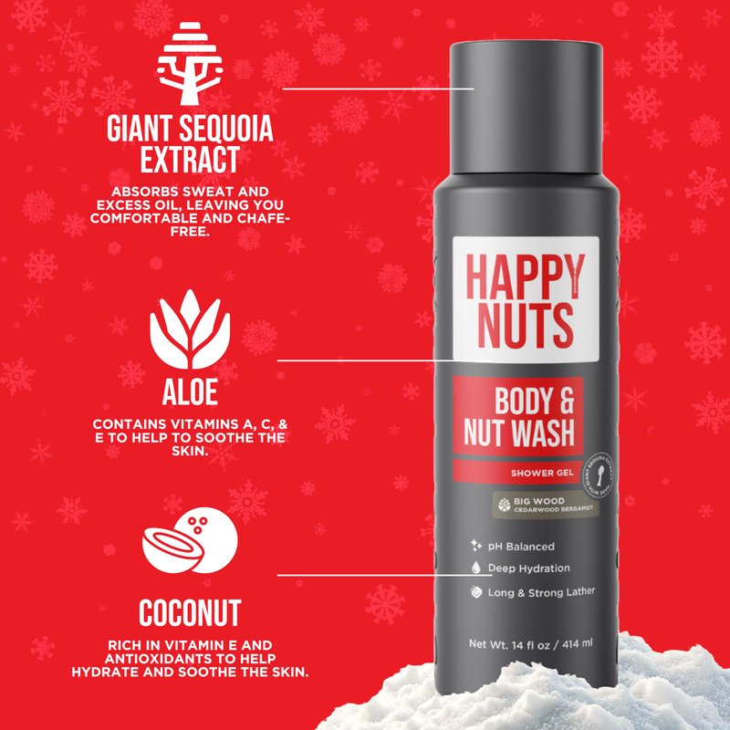 HAPPY NUTS Big Wood Body and Nut Wash - Moisturizing Men's Shower Gel, Bodywash with Deep Cleanse for Sensitive Skin - Men's Body Soap