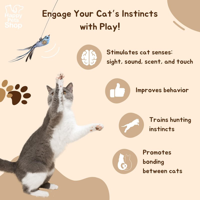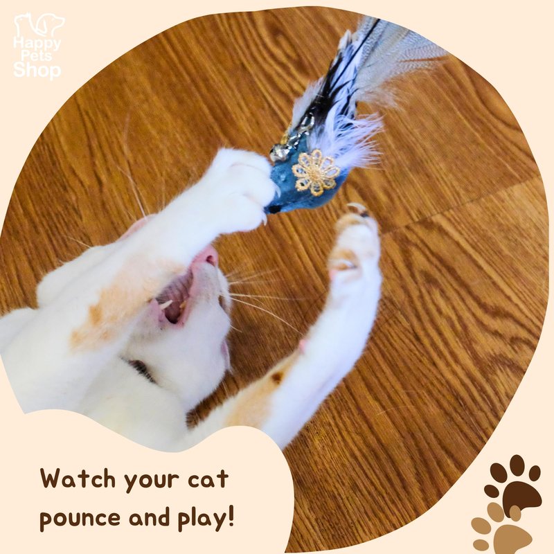 Happy Pets Shop Cat Toy Feather Wand Suction Cup - Interactive cat Toy - Automatic cat Toy - Interactive cat Toys for Indoor Cats - Cat Feather Toy Automatic - Interactive Bird Simulation Cat Toy