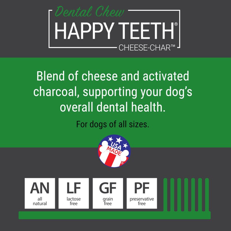 - CHEESE FLAVOR with CHARCOAL - USA Made with 2 Happy Teeth Charcoal Dental Chews per pouch