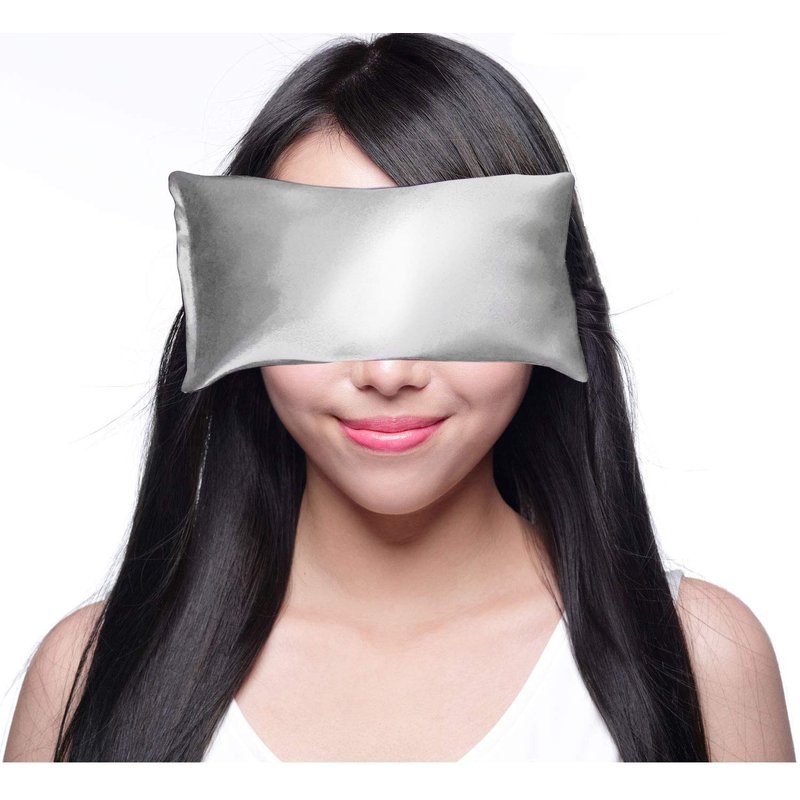 Happy Wraps Lavender Eye Pillow - Hot Cold Aromatherapy Satin Eye Mask for Yoga, Sleeping, Migraines, Stress, Relaxation - Gifts for Women, Birthdays, Coworkers, Christmas - Silver