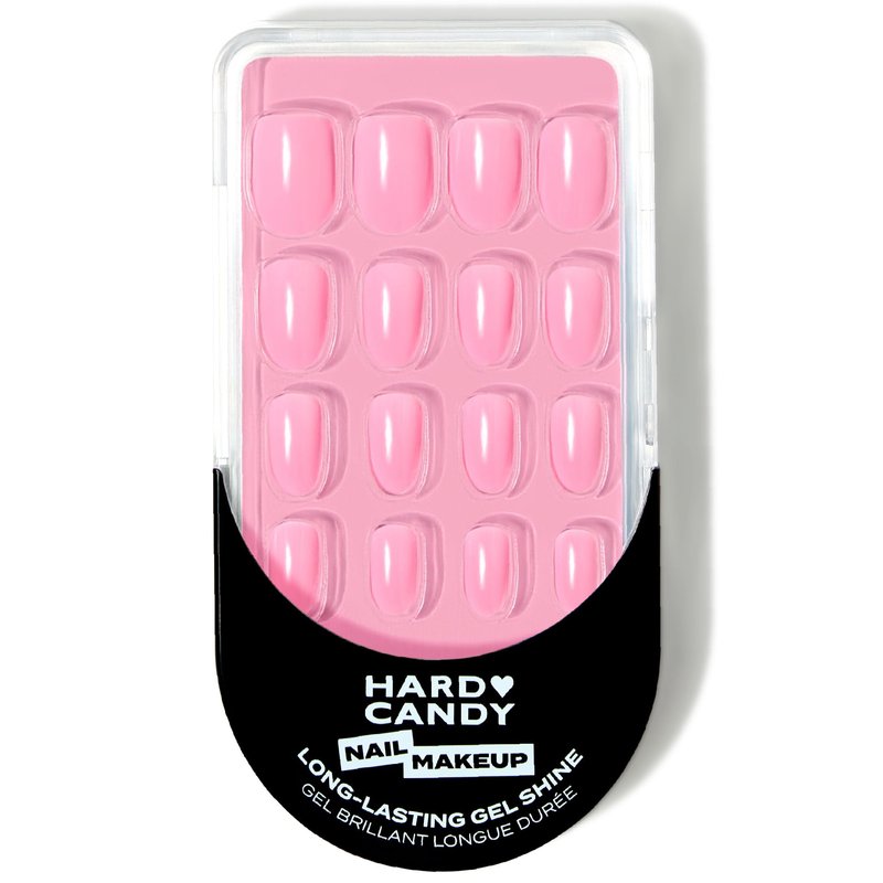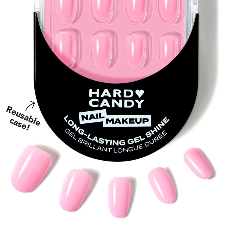 Hard Candy Press On Nails, Reusable with Gel Shine Finish, CUTE, Pink Nails, Round Almond Nails with Nail Glue and Travel Case