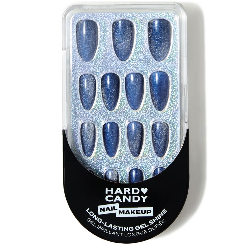 Hard Candy Press On Nails, Reusable with Gel Shine Finish, Dragon Eye, Blue Cat’s Eye Effect, Long Almond Nails with Nail Glue and Travel Case