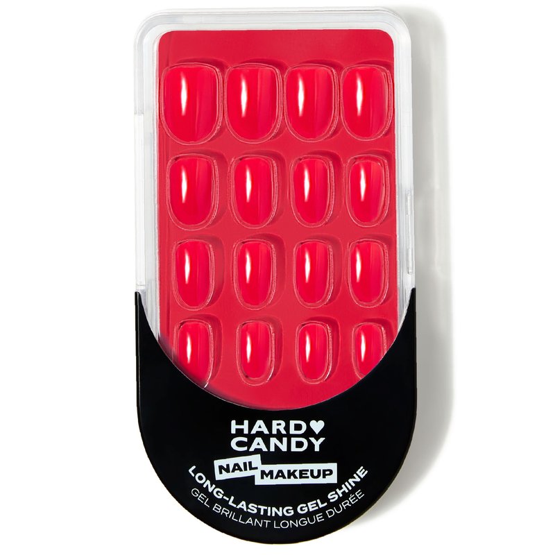 Hard Candy Press On Nails, Reusable with Gel Shine Finish, FIRE, Red Nails, Short Round Nails with Nail Glue and Travel Case