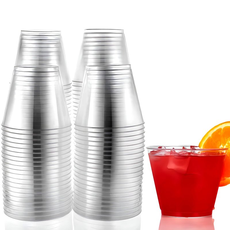 Hard Plastic Tumblers 9 oz. Party Cups/Old Fashioned Glass, 50 Count Drinking Glasses, Crystal Clear