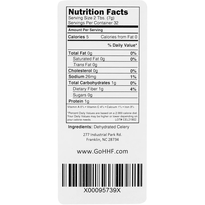 As a nationally trusted and recognized industry leader, we take pride in every product we create. Our celery is carefully selected and gently air dried for maximum nutrition and long shelf life. Each 8 oz. jar contains a full quart (4 cups) of our fresh dried, crisp celery.
