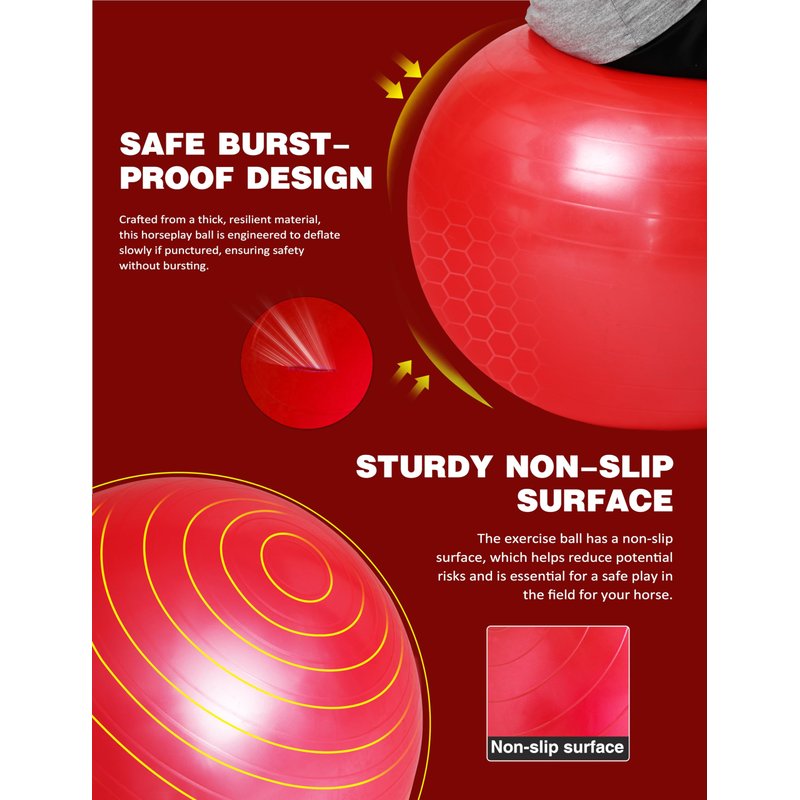 - STURDY NON-SLIP SURFACE: The exercise ball has a non-slip surface, which helps reduce potential risks and is essential for a safe play in the field for your horse. Meanwhile, the non-slip surface ensures that the ball cover(sold separately) can fit snugly over the ball without slipping.