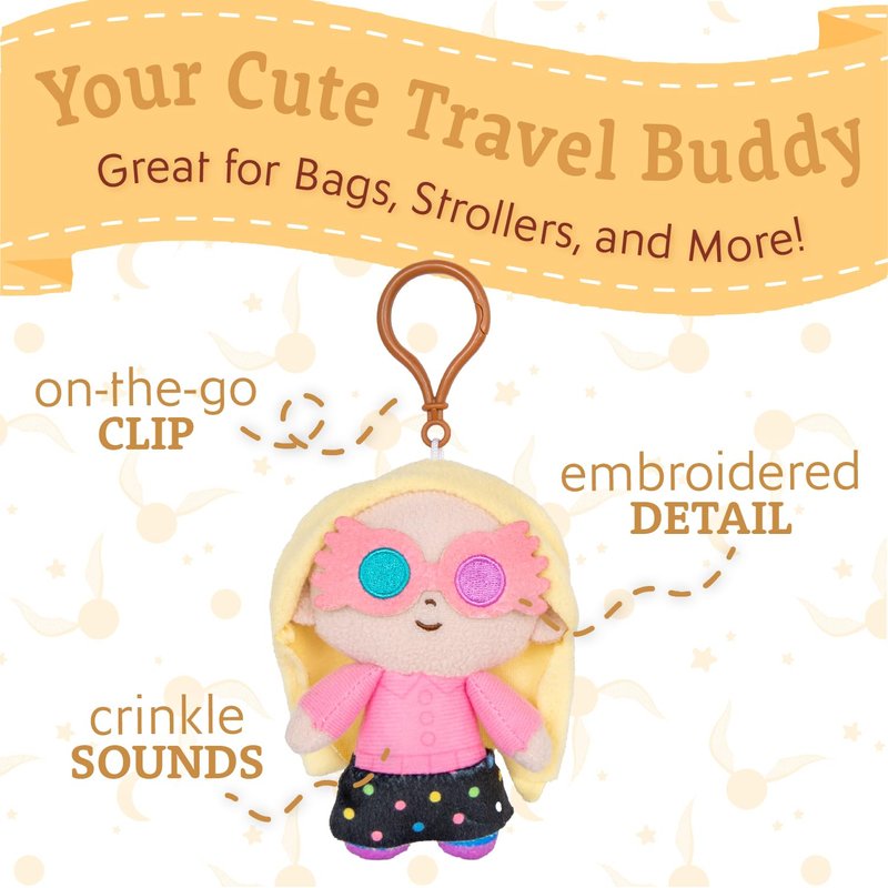 - On-The-Go Clip: Easily attach this plush toy to a diaper bag or backpack using the secure clip, allowing parents and caregivers to bring the magic of Harry Potter on every adventure, whether it's a stroll through the park or a family vacation