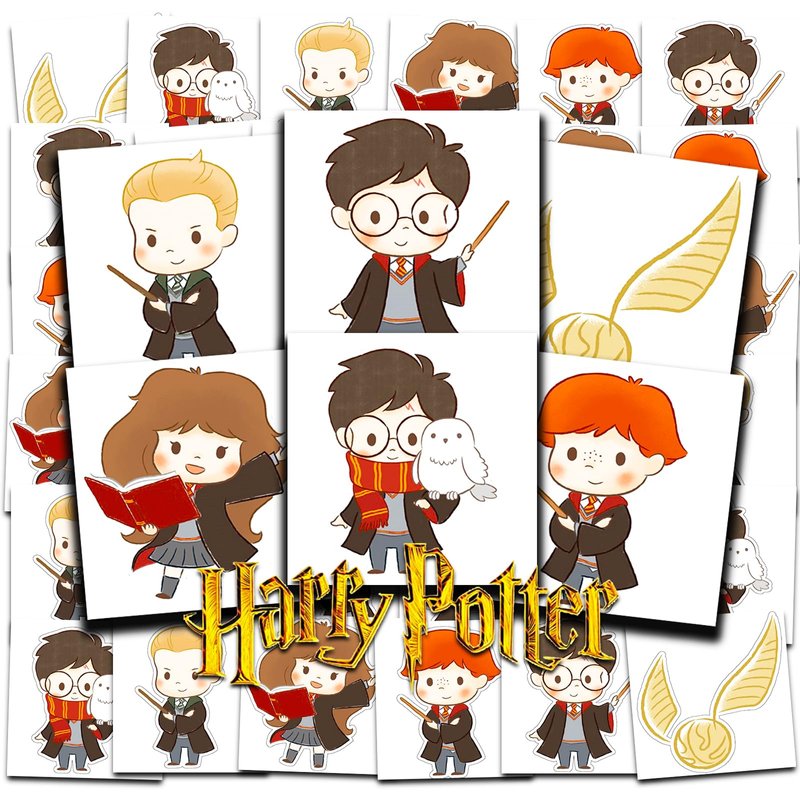 - Package of over 70 Harry Potter temporary tattoos, perforated for convenience. Each tattoo measures 2" x 2".
