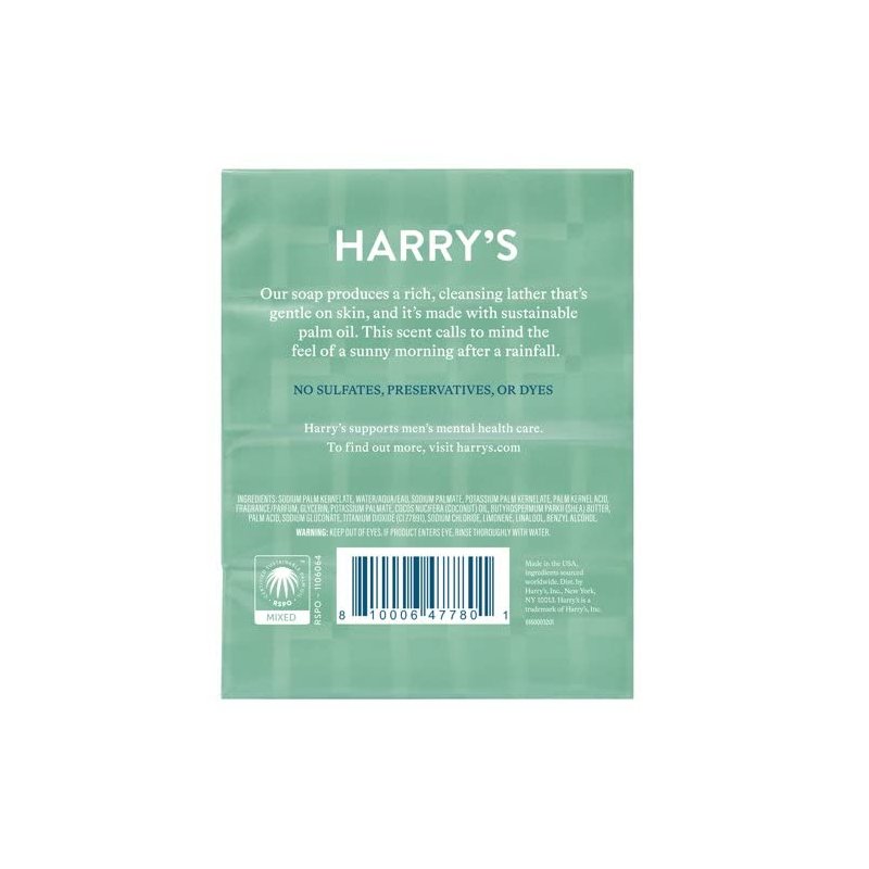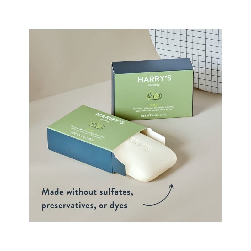 Harry's Bar Soap lathers richly, cleanses deeply, and leaves skin feeling smooth after every wash. Made without parabens, sulfates, or dyes, this body cleanser banishes dirt and leaves your skin feeling clean and soft. Some soaps use sulfates to create lather, leaving your skin dry and sensitive. We chose gentle ingredients that cleanse deeply while keeping your skin's natural oils intact and still creating plenty of suds. Harry's Men's Bar Soap creates a rich sulfate-free lather with creamy, full soap suds, leaving skin smooth and conditioned, even long after your shower or bath. The Shiso scent is bright and herbal, infused with notes of Crushed Shiso, Oakmoss, and Lemon Zest for a refreshing scent to kick off (or wash off) your day. This earthy scent brings to mind the dewy petrichor after a rain shower - all in your shower or bathtub. Harry's Bar Soap for Men is available in four signature scents - Fig, Redwood, Shiso, and Stone. Prefer to get your bubbles from a body wash? Harry's Body Wash comes in the same signature scents.