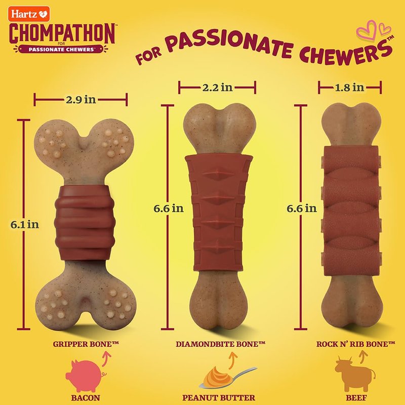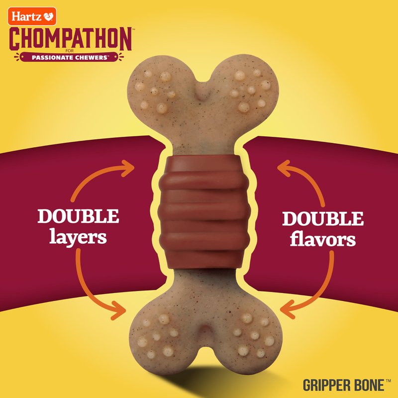 Hartz New Chompathon Gripper Bone Dog Chew Toy for Aggressive Chewers, Double Layered Flavored with Chicken & Bacon