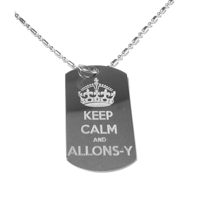 Hat Shark Keep Calm and Allons - Y Tv Show Logo Symbol - Military Dog Tag, Luggage Tag Metal Chain Necklace