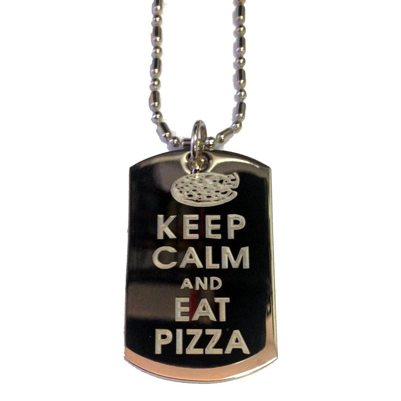 Hat Shark Keep Calm and Eat Pizza - Military Dog Tag, Luggage Tag Metal Chain Necklace