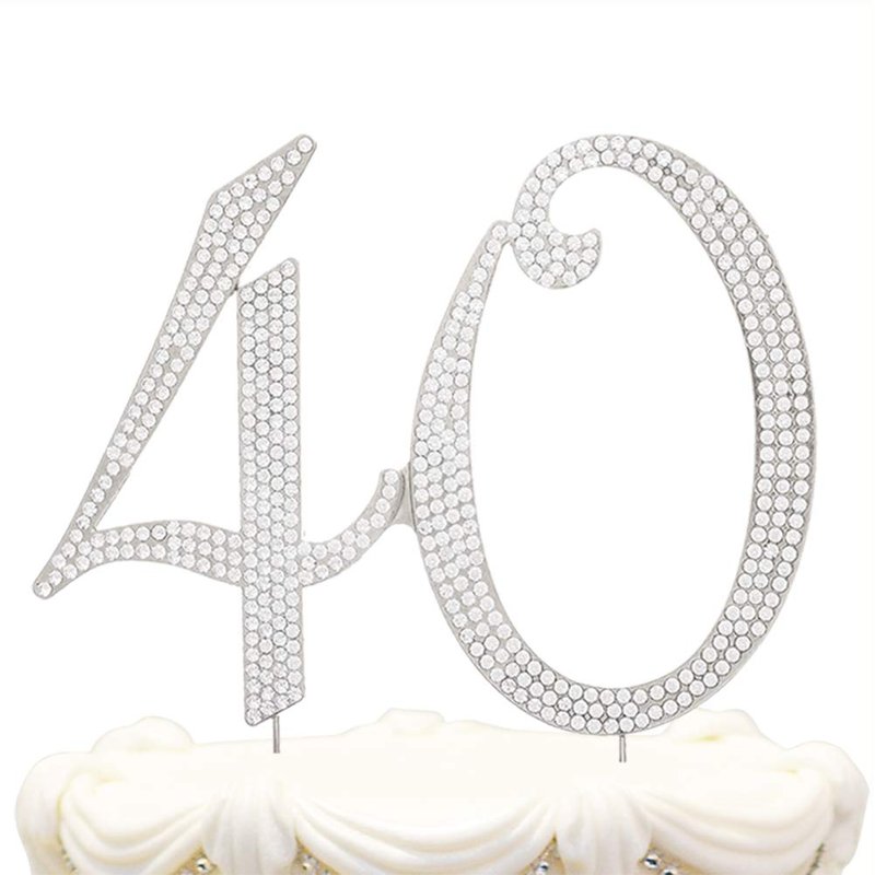 Hatcher lee Bling Crystal 40 Birthday Cake Topper - Best Keepsake | 40th Party Decorations Silver