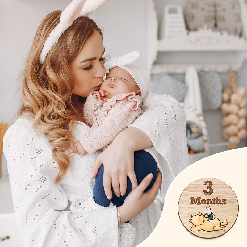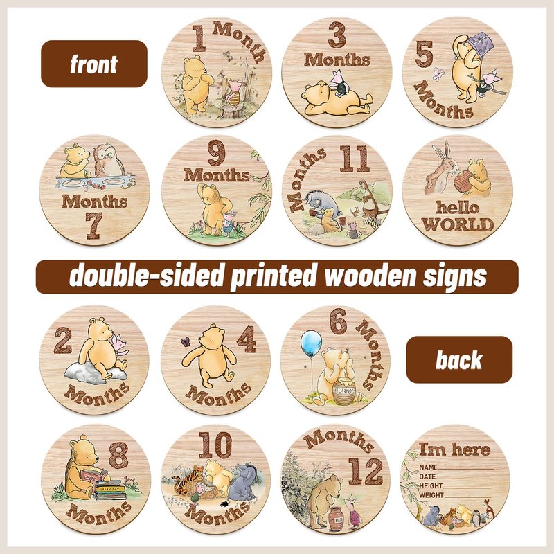 Hatzelou 7Pcs Baby Monthly Milestone Circles, Winnie The Pooh Baby Stuff, Double-Sided Printing Months Baby Milestone Wooden Keepsake, Milestone Wooden Circles Stuff for for Documenting Growth