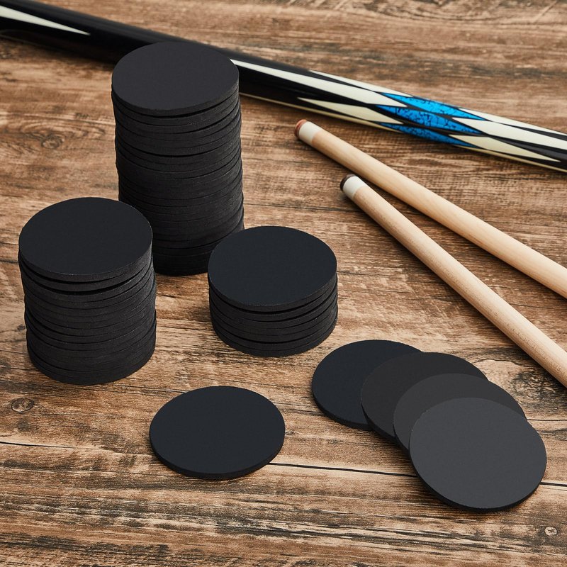 - Package Includes: you will receive 50 pieces of pool table shims in black, each of the table shims measures about 3 inches/ 76 mm in diameter, about 0.06 inch/ 1.5 mm in thickness, you can also use multiple pieces for a thicker padding