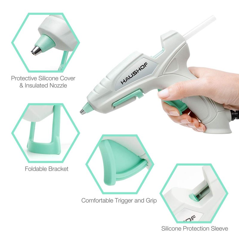 - Trigger Propulsion Device: The trigger propulsion can maintain a well control of the glue flow, bringing easy usage, as well as saving glue sticks. HAUSHOF hot glue gun can be used normally in an ultra-low temperature working environment of -23±2°C.