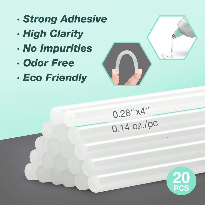 - Mini Glue Sticks: Coming with 20pcs environmental-friendly and strong-adhesive glue sticks of 0.28''(Diameter)x4''(Length), which can well protect your health and items. Attention that do not pull out the melted glue stick after work, keep it inside for next use, otherwise it will damage the glue gun