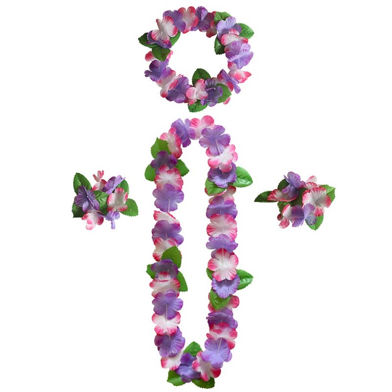 - 【EASY TO USE AND PORTABLE】 This pretty flower hawaiian set are portable with small size and light weight, you could enjoy it at anytime and anywhere. They are universal-fitting design and easy to wear. You can wear it just for entertainment, or help you to decorate your home and party. One size fits most people, cute and reusable, easily to fit your body, comfortable to suit for any age, especially women and girls. Please don't push them with strong strength, just hand wash, no mechine wash