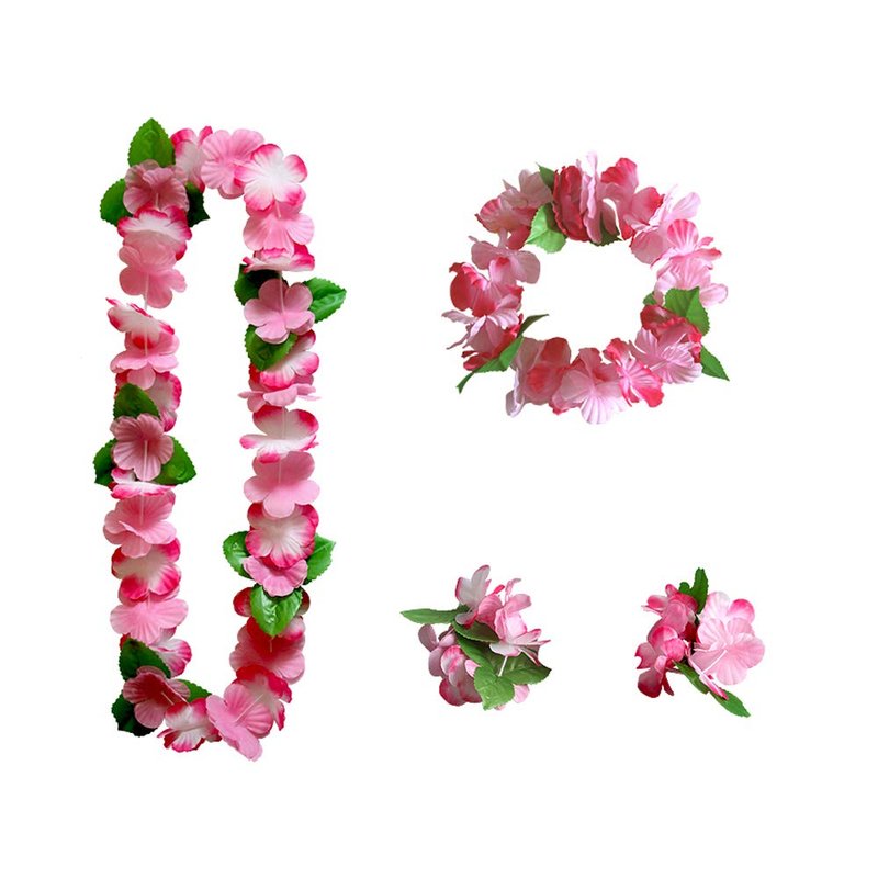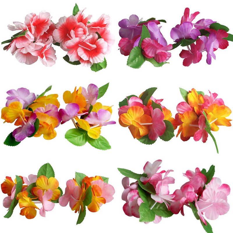 6 pcs hawaiian leis + 6 pcs hawaiian headband + 6 pairs hawaiian bracelets