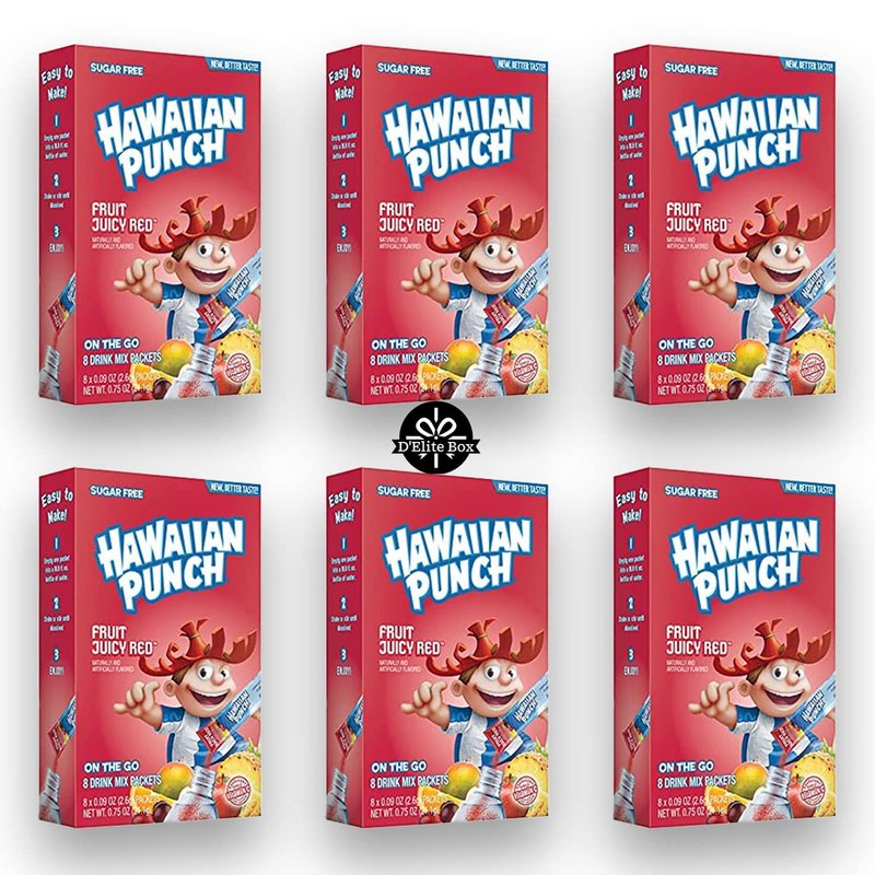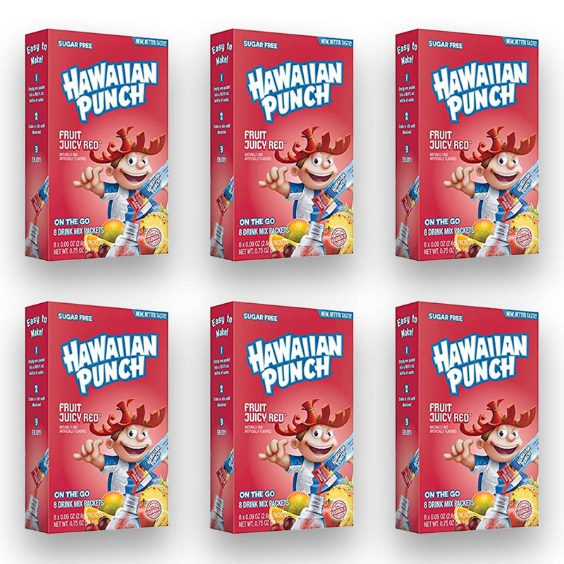 - Six of 8 ct. boxes of Hawaiian Punch Juicy Red Zero Sugar OnTheGo Powdered Drink Mix