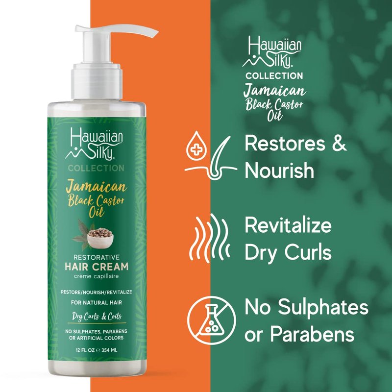 This Restorative Hair Cream is a leave-in conditioner that keeps your dry, thirsty curls, and waves looking hydrated and noticeably soft all day long. Hawaiian Silky COLLECTION Jamaican Black Castor Oil is formulated with a power-house of nutrient rich ingredients to restore & revitalize your natural hair.