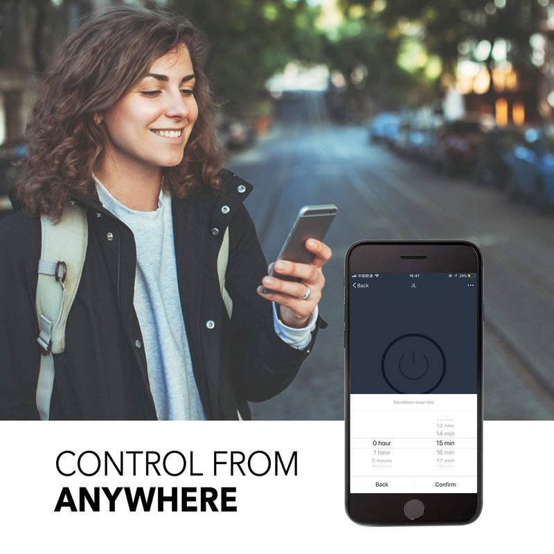 - CONTROL FROM ANYWHERE - Turn lights, fans, and appliances on or off automatically from anywhere in the world with your smartphone anytime via the HBN Smart app.