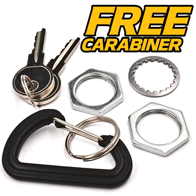 Premium Ignition Switch & NEW Rubber Molded Key. Includes 1 Premium Key, 2 Standard Keys, Mounting Hardware and Carabiner Keychain.