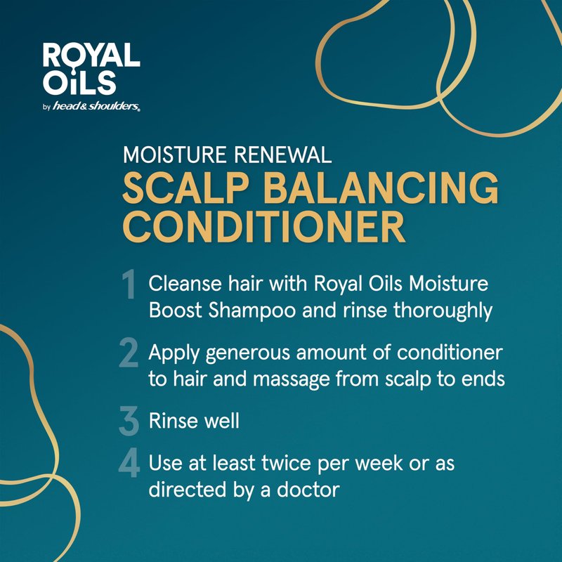 - Head and Shoulders Royal Oils Moisture Renewal Conditioner balances and restores scalp health* (*with regular use)